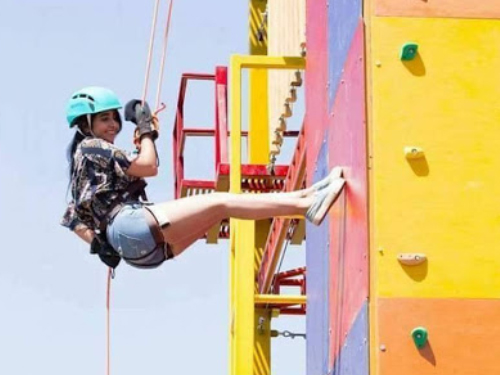 Zip line, Wall Climbing, Rappelling, Sky Cycle, High Rope Courses, Swimming Pool, Rain Dance, Waterfall